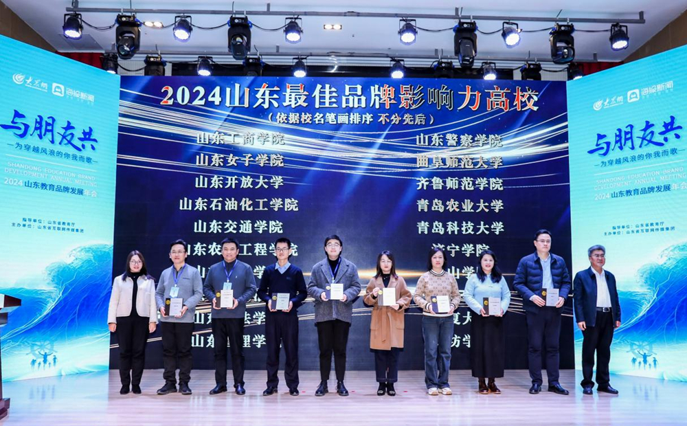 1月10日下午,由山东省教育厅指导,山东省互联网传媒集团大众网·海报新闻主办的“与朋友共——为穿越风浪的你我而歌”2024山东教育品牌发展年会在青岛举办。省教育主管部门及150余所高等院校宣传工作相关负责人齐聚一堂,共同聚焦“山东教育品牌发展”,探讨融媒体时代的教育品牌向上生长之力与传播路径。会上正式发布年度评选榜单,beat365官方网站获评“2024山东最佳品牌影响力高校”“2024山东最具影响力教育政务融媒体”称号,党委宣传部新闻中心刘奕辰、马玉洁、乔政文获评2024年度优秀教育融媒体创作人。党委常委、宣传部部长张洪坤代表学校参会并领奖。