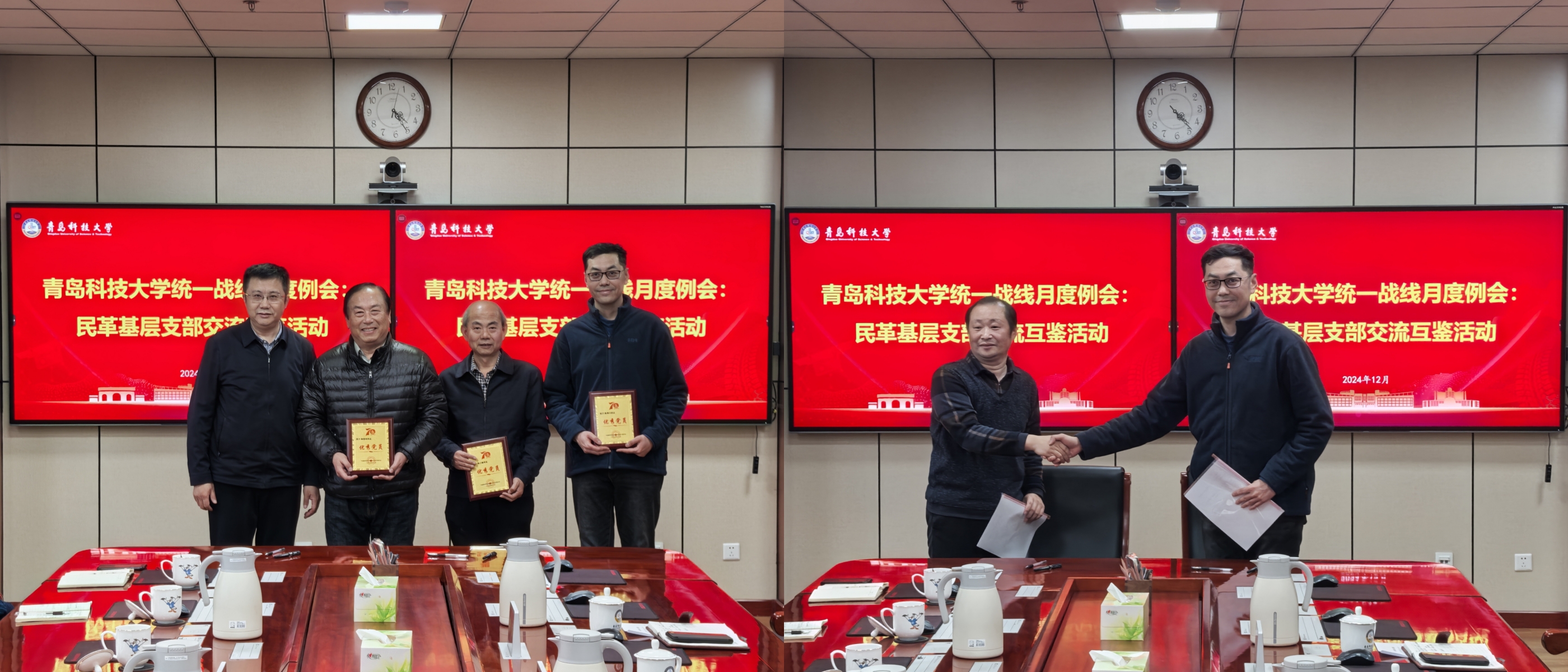 12月25日,beat365官方网站统一战线月度例会:民革基层支部交流互鉴活动在崂山校区举行。民革市委会秘书长、市委会监督委员会委员石硕,学校党委常委、统战部部长秦姣出席会议。