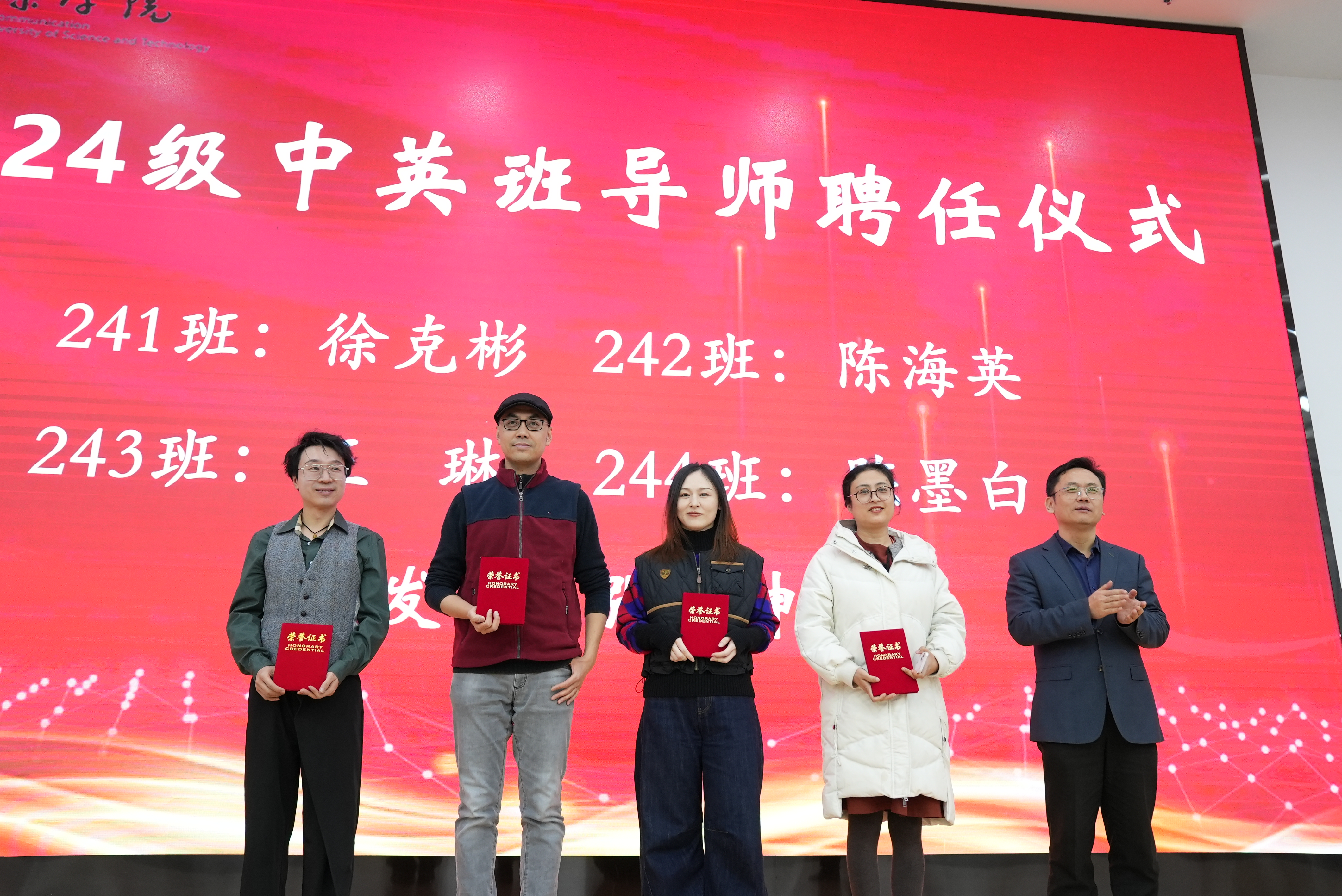 此次“学领中英动画奖学金”共颁发英语进步奖、布大创作潜力奖、优秀班级导师奖等13个奖项,旨在激励在英语、专业课学习,艺术创作等方面表现优异的学生,在学生教育管理服务中表现突出的班级导师,在就业指导上贡献卓越的教师等。典礼上,中英动画班级导师代表、新老生代表分别发言,并聘任影视与动画系徐克彬、陈海英、王琳、陈墨白为2024级中英动画班导师。
