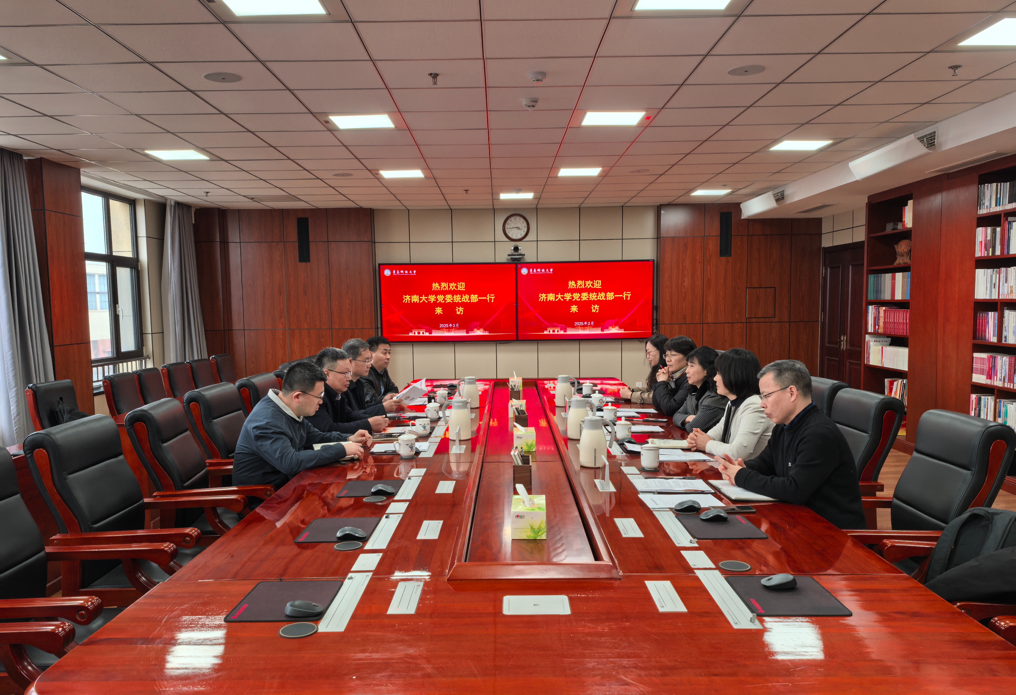 3月11日,济南大学党委常委、统战部部长徐庆国一行来校考察调研。学校党委副书记沈文青,党委常委、统战部部长秦姣出席座谈会。