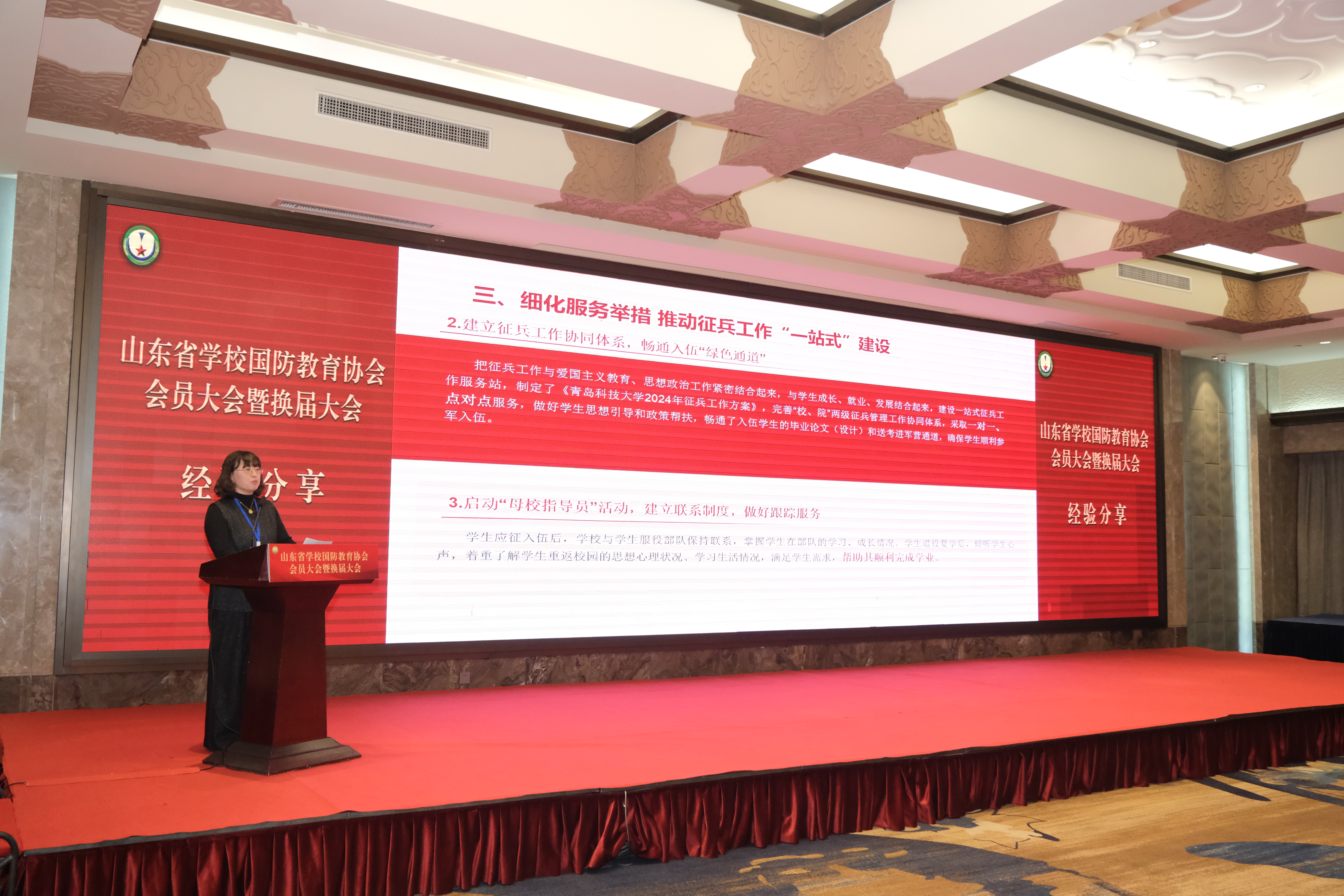 日前,山东省学校国防教育协会会员大会暨换届大会在济南召开。省委教育工委委员,省教育厅党组成员、副厅长李鹏出席会议并讲话。会上,5所高校作典型经验交流发言。党委学生工作部(武装部)部长王丽代表学校在大会上作典型经验交流。