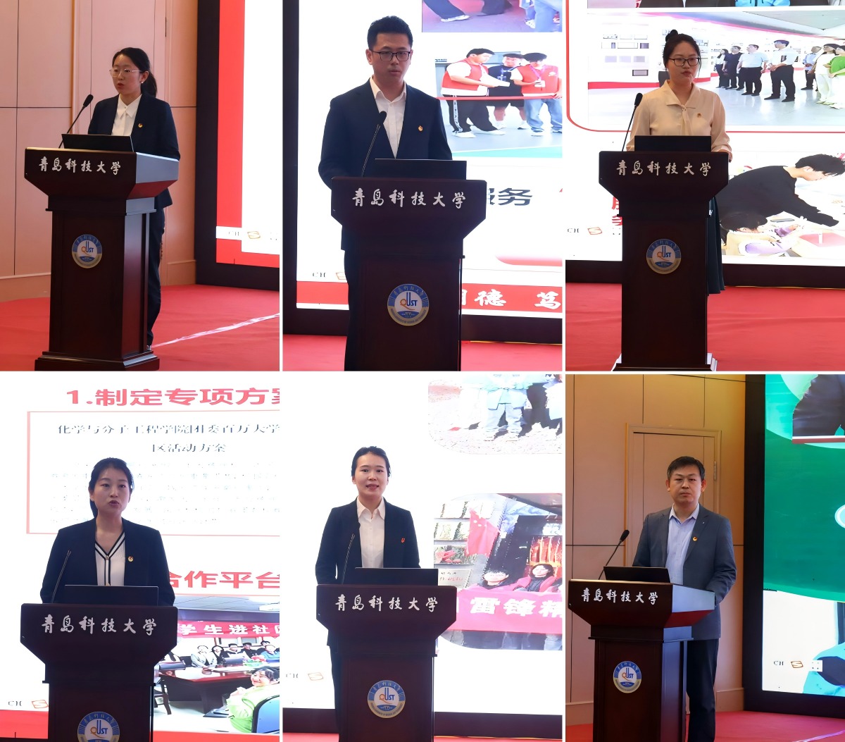 4月18日,学校2024年度共青团特色工作交流会暨“五四红旗团委”答辩评审会在崂山校区第三报告厅举行。党委常委、副校长丁林,党委常委、组织部部长朱敬义出席活动。