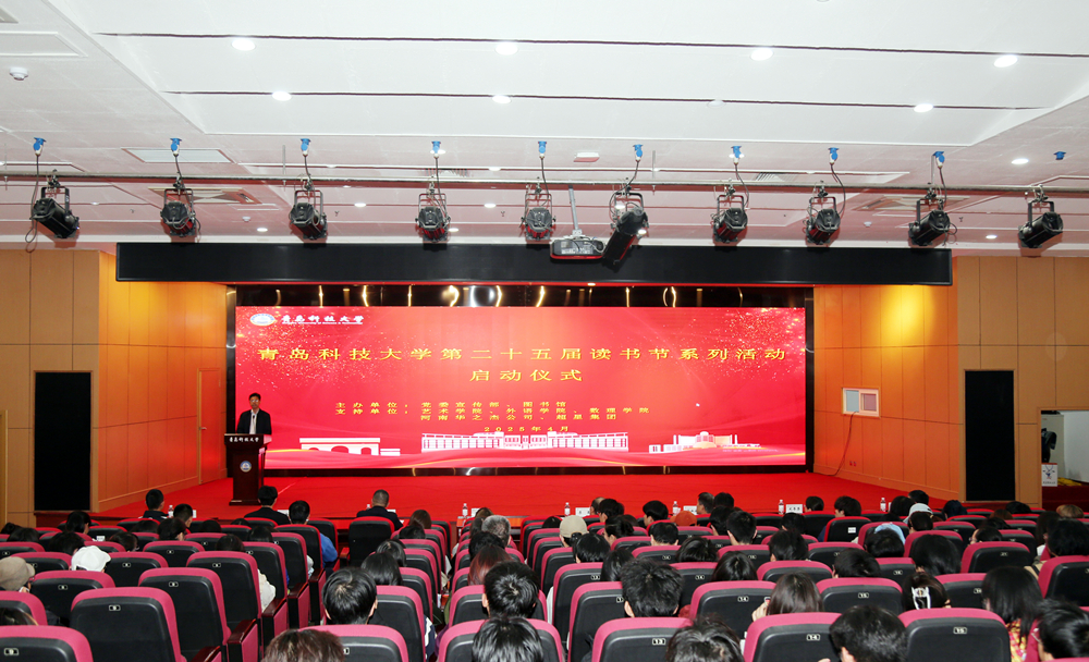 4月22日,“阅读润我心·书香满校园”beat365官方网站第二十五届读书节启动仪式在崂山校区第三报告厅举行。党委副书记李勇出席并讲话。图书馆党总支书记王士卿主持仪式。