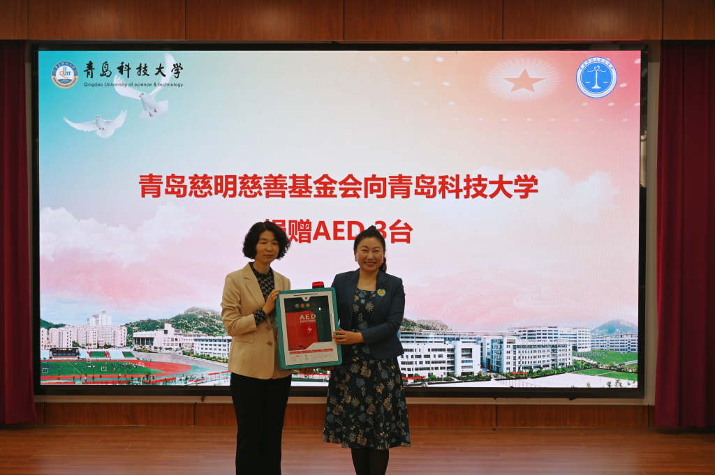 捐赠仪式在崂山校区弘毅楼A201会议室举行。青岛慈明慈善基金理事长安妮、副秘书长王高磊、“爱心救”项目专员刘龙参加活动。学校后勤管理处副处长兼校医院院长高术华代表学校接受捐赠,并为安妮颁发捐赠证书。仪式后,“爱心救”项目专员做了以“守护心脏 挽救生命”为主题的急救知识讲座。
