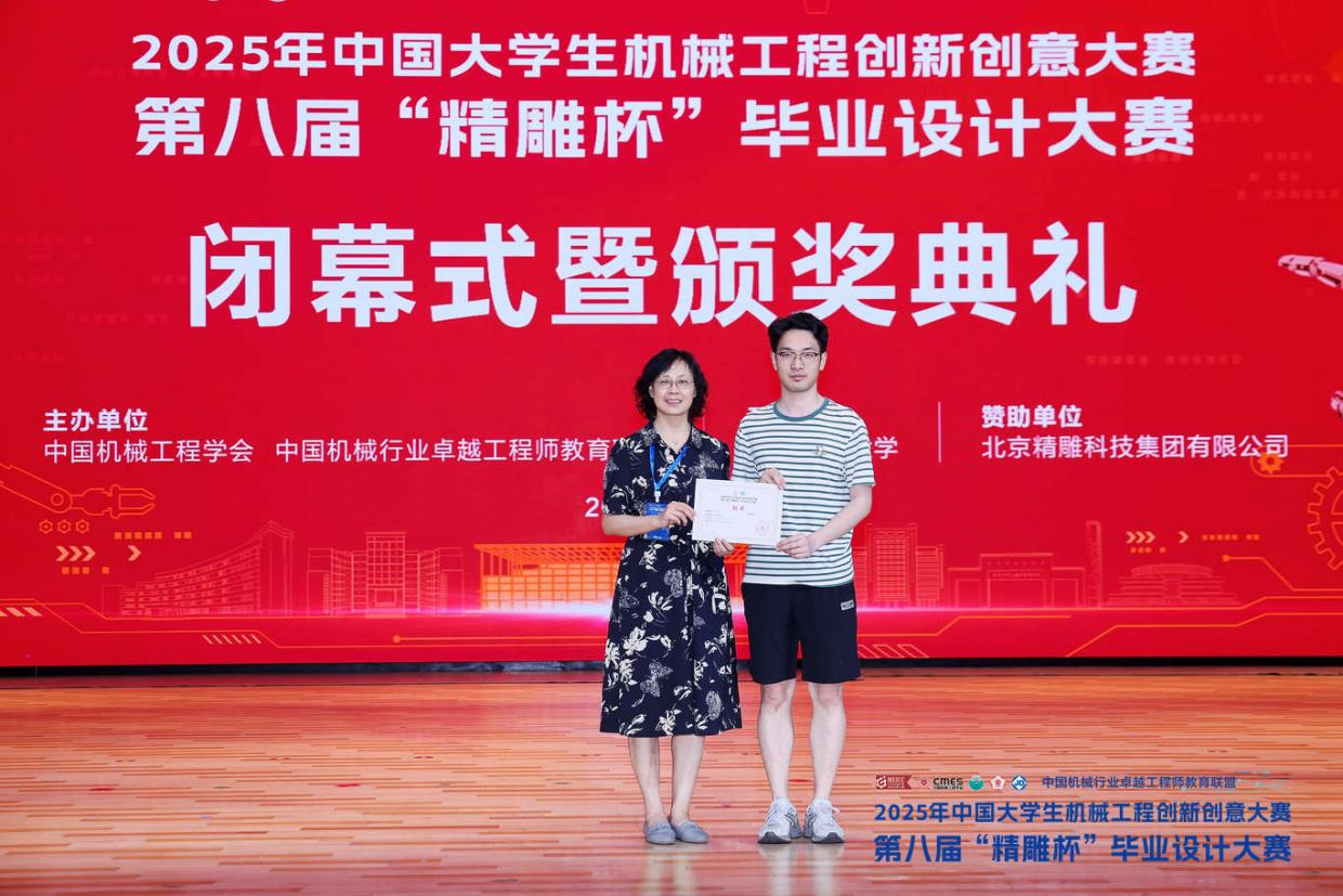 据悉,此次大赛由教育部高等教育司、高等学校机械类专业教学指导委员会指导,中国机械行业卓越工程师教育联盟、中国机械工程学会共同主办,是一项具有导向性、示范性的机械类专业毕业设计竞赛。共有全国148所高校的1523项作品参赛,创历届参赛项目数量新高。决赛共设12组(10组个人项目,2组团队项目)进行分组答辩,各组得分最高的作品进入金奖角逐赛(2项金奖,10项银奖),各组得分排名2-3获得铜奖(24项),排名4-12获得优秀奖,其他为佳作奖。