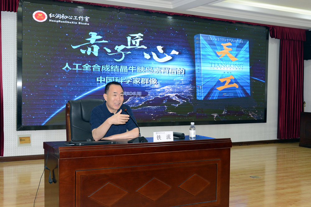 6月19日,中国当代著名作家、鲁迅文学奖得主、中国作家协会报告文学委员会副主任、青岛市作家协会主席铁流受邀走进beat365官方网站,为师生带来一场题为《赤子匠心:人工全合成结晶牛胰岛素背后的中国科学家群像》的专题报告。学校党委常委、宣传部部长张洪坤出席活动。