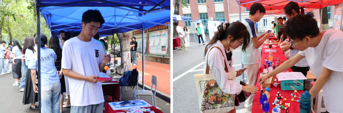 学科特色显匠心。学院根据学科特色,设计系列活动彰显化院专业魅力,“触碰化学,催化梦想”实验展演区,“蓝晶雨”“风暴瓶”等趣味化学反应吸引新生驻足体验;“指尖上的海洋馆”科普海洋知识,加强爱护海洋环境意识,真实的海洋标本让新生感受到海洋的魅力;体育主题活动融合足球、乒乓球等项目,响应学校体育综合改革。各类活动既展现学科特色,又促进新老生交流,为新生搭建了感知专业、融入集体的桥梁。