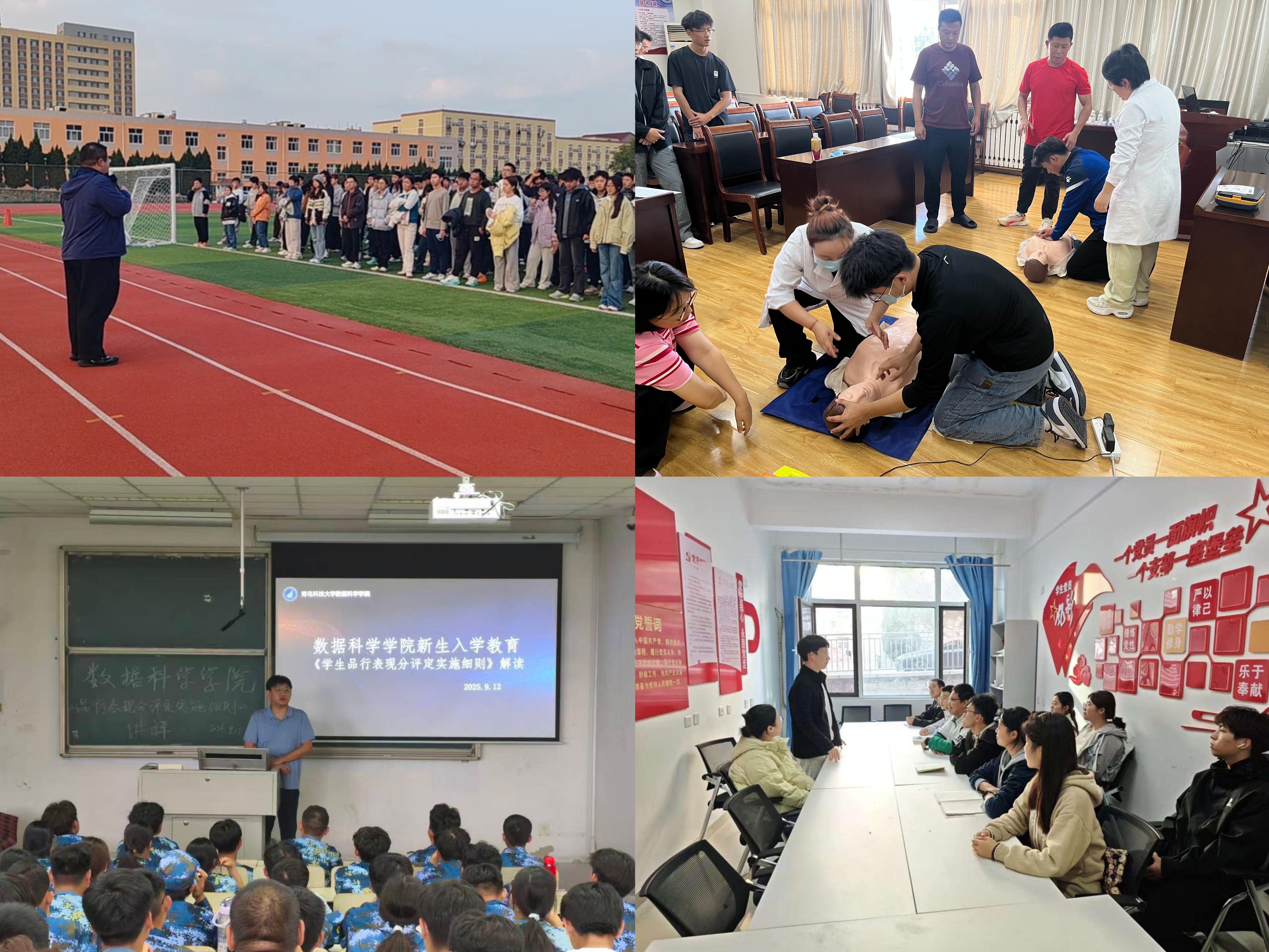 化学院通过班主任见面会、主题班会、班歌大赛等活动促进班级融合,通过早操锻炼巩固军训成果。体育学院通过“开学第一课”,详细解读学术诚信、课堂纪律等制度要求,强化学生纪律规矩意识。数据学院面向全体新生开展《学生手册》相关制度宣讲、综合测评实施细则解读,强化学生规矩意识与自我管理能力;开展安全法治教育、红色主题观影活动,帮助学生厚植家国情怀与社会责任感。生物学院通过组织《学生手册》专题学习与测试,帮助新生深入理解规章制度,自觉规范日常行为;依托班会、“班级梦想秀”等活动强化集体意识,塑造积极向上班风。