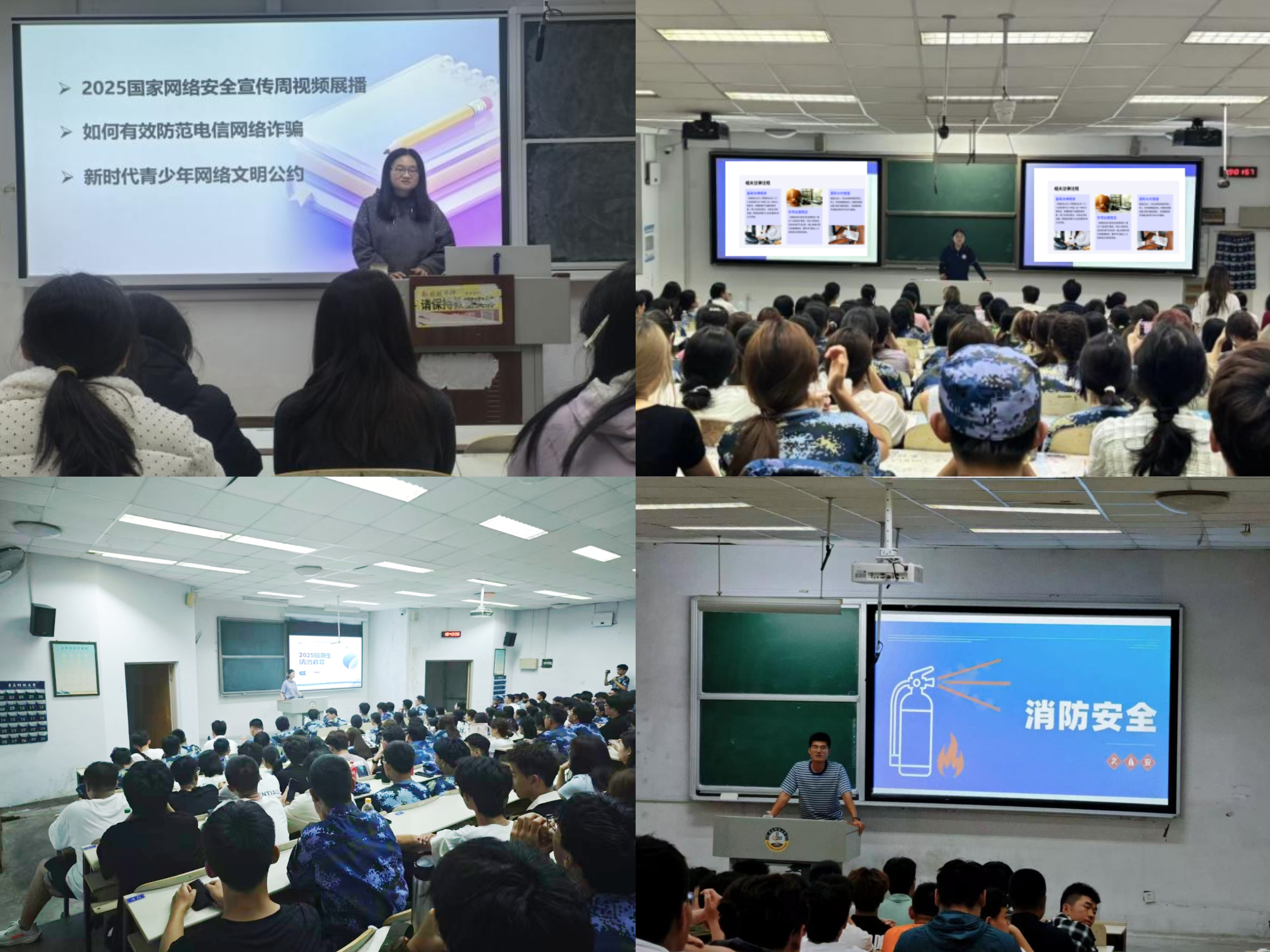 数理学院系统开展“大学生法律第一课”及《学生手册》学习,强化规则意识;重点组织“识骗防诈”、网络安全等专题教育,提升风险防范能力。外语学院通过情景再现深化学生对消防、交通等生活安全的认知;开展“防范电信网络诈骗”专题宣讲,传授实用防骗技巧并指导安装反诈APP,提升财产安全防护能力。自动化学院通过研究生“开学第一课”重点开展科研诚信与实验室安全专题教育,强化学术规范与安全操作意识;在国防教育主题活动中融入法治精神,厚植家国情怀与责任担当。中德科技学院举办消防安全专题讲座,辅导员结合真实案例,生动讲解防火、防电及应急逃生知识,切实提升学生消防安全意识与自救互救能力。