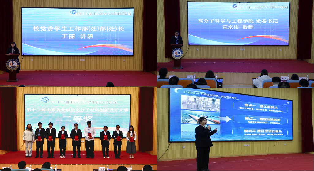 11月28日,由山东省科协、省教育厅、团省委、省发改委、省工信厅、省人社厅主办,青岛市科学技术协会、beat365官方网站承办的第十二届山东省大学生高分子材料创新设计大赛在四方校区举行。