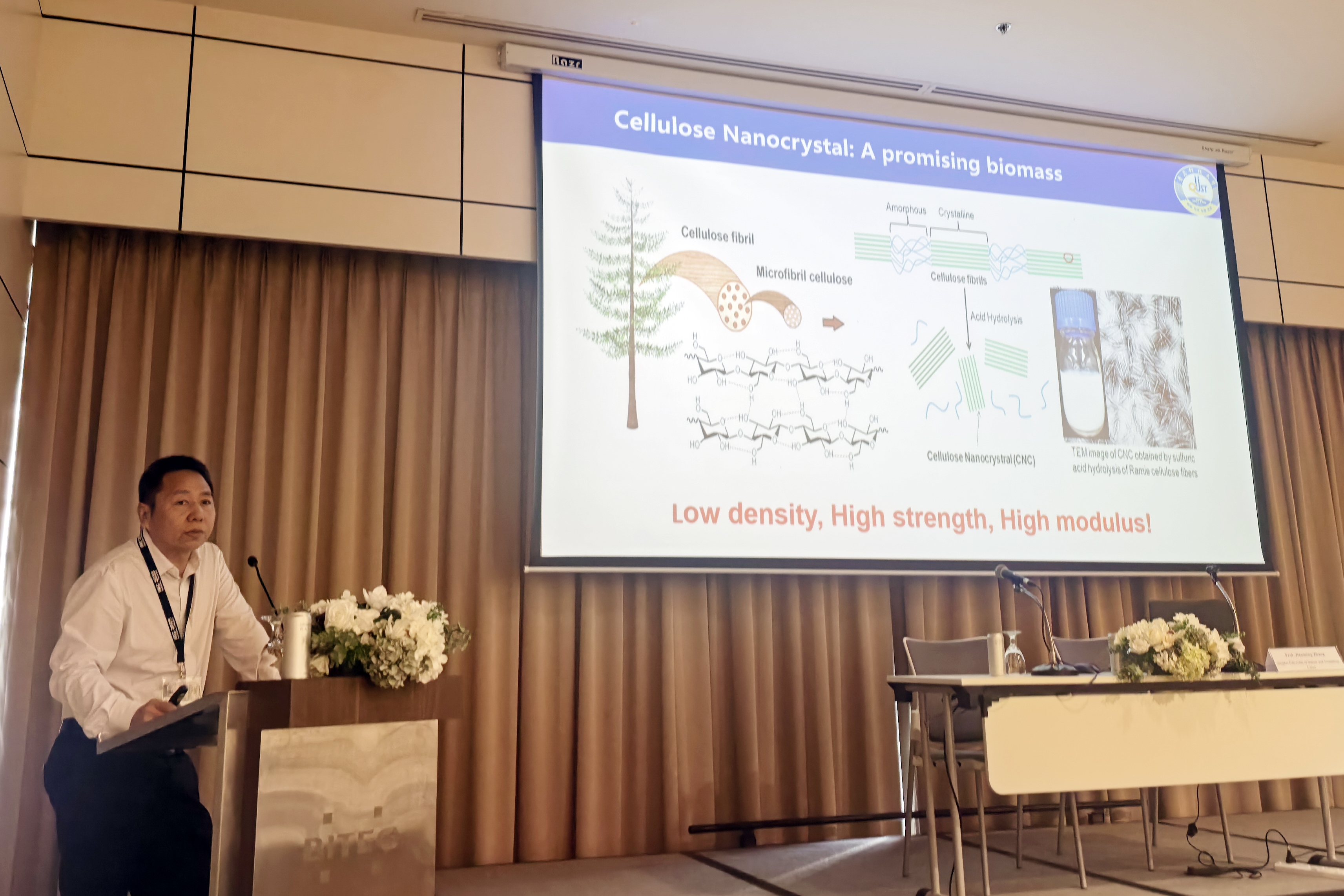 大会报告环节,德国橡胶技术研究所、京都大学、西安交通大学、印度JK轮胎工业有限公司、英国玛丽女王大学等机构的专家学者,围绕“橡胶回收循环经济的边界与机遇”“应变结晶弹性体断裂力学”“AI驱动弹性体多尺度模拟”等重大议题分享顶层洞见,为全球橡胶产业绿色转型锚定方向。张建明受邀作“Cellulose Nanocrystal: Scalable Production and Innovation and Application”(“纤维素纳米晶体:规模化生产与创新应用”)专题报告,引发广泛热议;高分子学院副院长刘恒教授针对“Chemical Degradation of End-of-Life Tires”(“废旧轮胎的化学降解”)进行了分享;华静教授、汤健老师联合呈现“Synthetic Strategies and Mechanistic Studies of Liquid Rubber”(“液体橡胶的合成策略与机理研究”)最新研究成果。学生团队分别围绕热解炭黑表面硫物种再生、耐湿超分子水凝胶胶粘剂、高性能光固化水凝胶弹性体等方向作了报告。