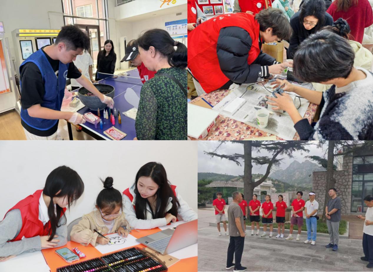 在文化传承与社区治理方面,校园青春力量持续发力。数据科学学院“小星云”志愿服务队开展非遗漆扇、水拓丝巾体验和节气文化趣味互动,以及餐桌礼仪宣讲;中德科技学院“德韵”志愿服务队构建“三阶九维”课程体系传承胶州秧歌、黑陶制作等非遗技艺;体育学院依托“抗日烽火・体育赋能”实践团以情景短剧讲述胶东抗战故事,融合体育公益服务助力社区发展;传媒学院“小漫姐姐”志愿服务团队走进仙游路等社区,创新“AIGC公益课堂+非遗课堂”模式,以专业技能引导儿童完成创意创作,传承非遗文化;生物工程学院依托“绿韵”社区守护项目围绕环保科普、垃圾分类开展社区服务;机电工程学院依托“青锋”1+N+X社区志愿服务项目参与社区“接诉即办”、文明创建等工作,全方位助力提高生活中提升实践能力与公共服务的能力。