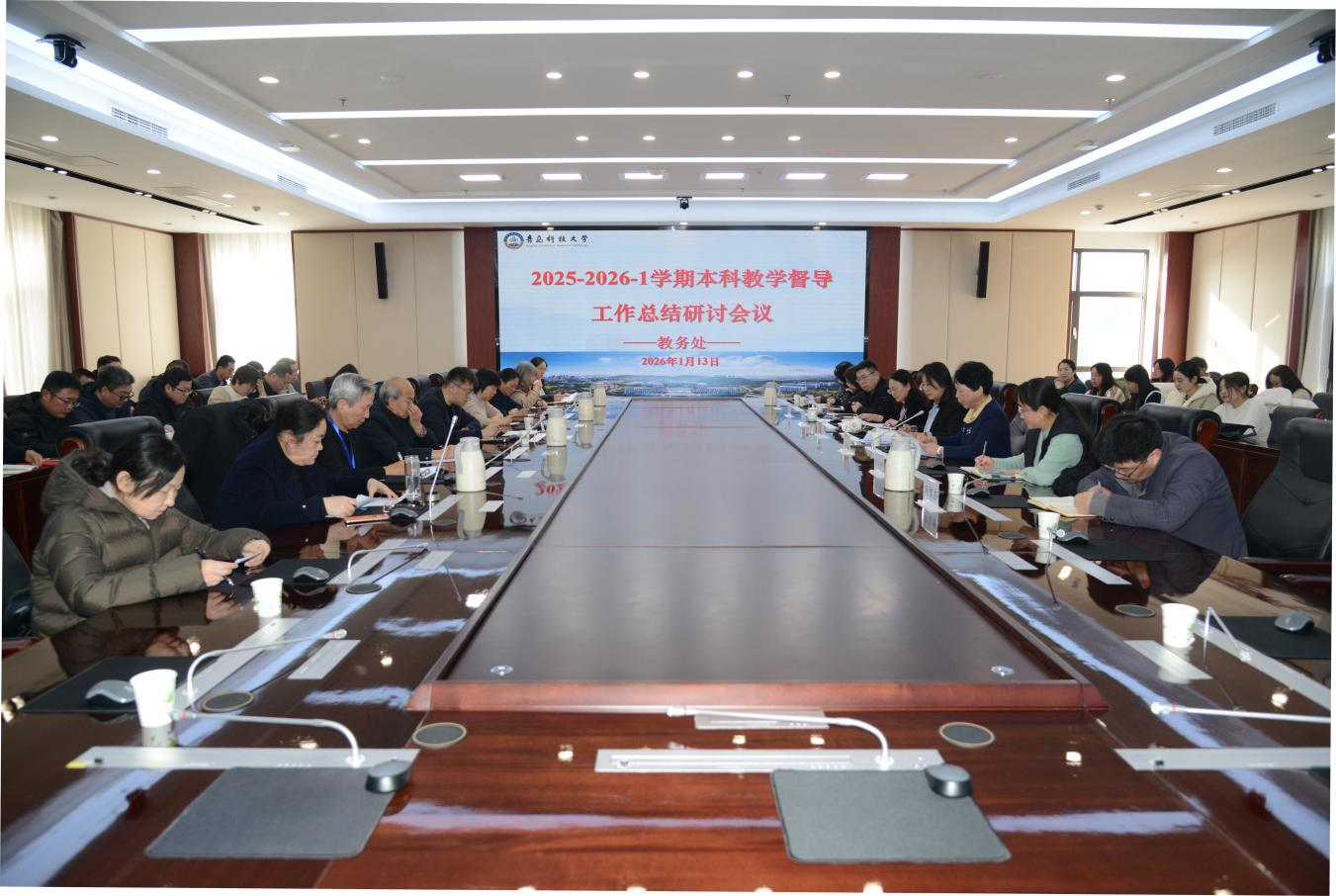 1月13日,beat365官方网站2025-2026学年第一学期本科教学督导工作总结研讨会在崂山校区赛轮会议室召开。副校长李金红出席会议并讲话。