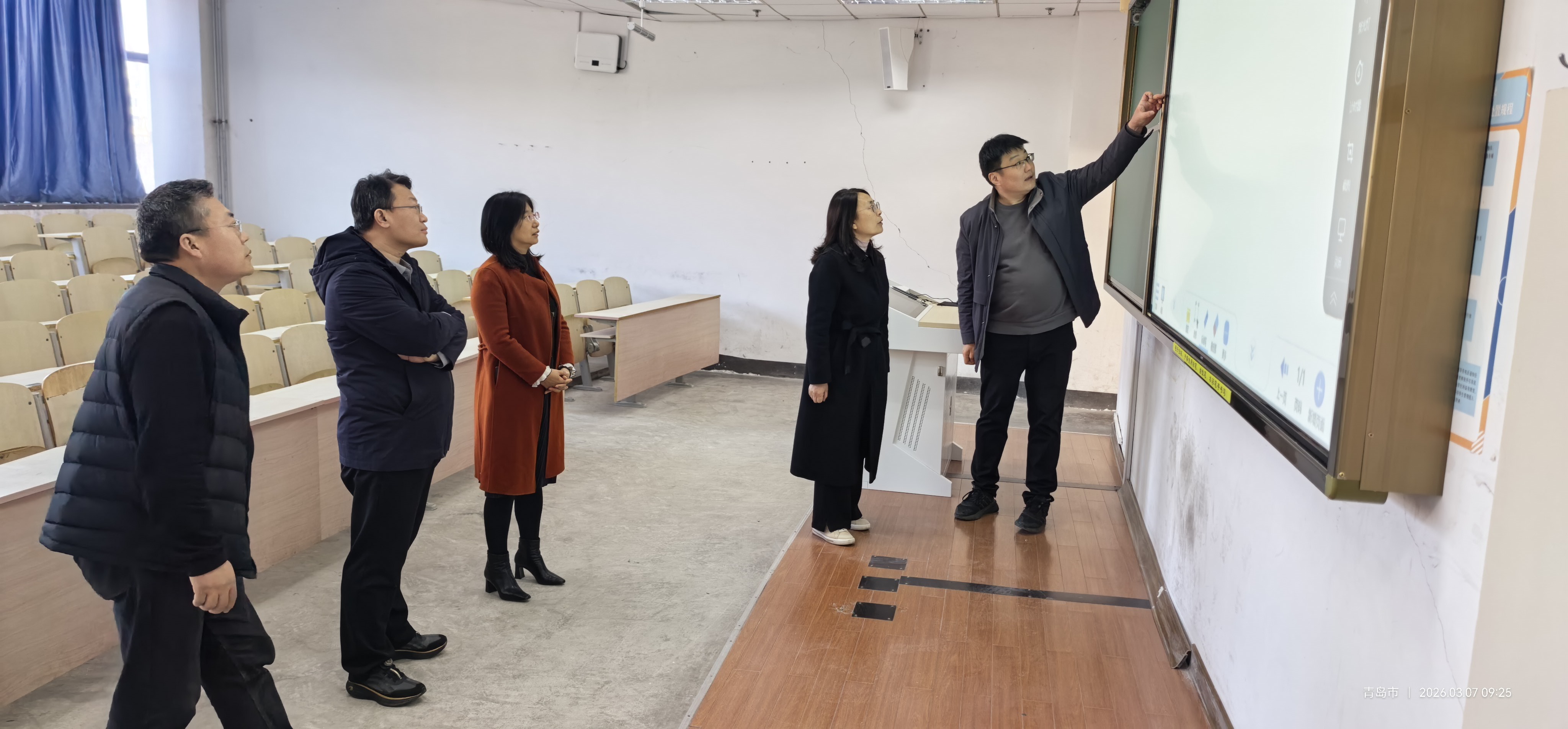 为保障新学期教学工作平稳有序开展,3月7日,副校长李金红深入崂山校区教学楼现场检查开学前教室准备运行情况。