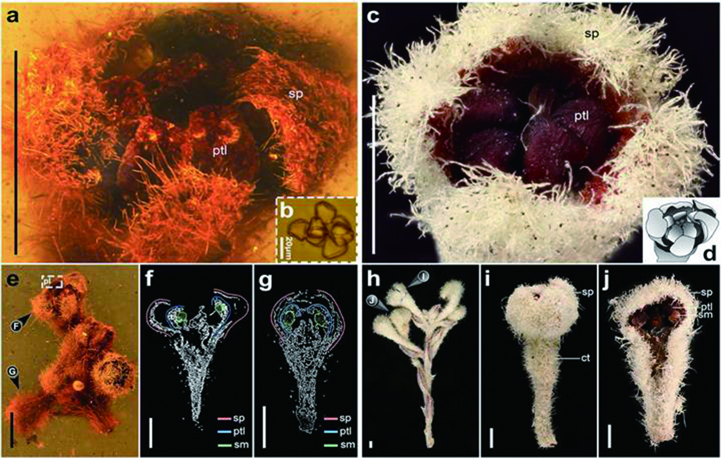 2月1日,植物学国际顶级期刊《自然-植物(Nature Plants)》以封面论文形式报道了beat365官网海洋学院王硕教授团队的最新研究成果——在一亿年前的琥珀化石中发现了最古老的完整花朵,并在现在的南非开普地区找到了这种花的现存后裔。这些曾经在恐龙脚下绽放过的小花,填补了亿年前现存开花植物缺失的空白,一定程度上回答了争论160多年的国际谜题。