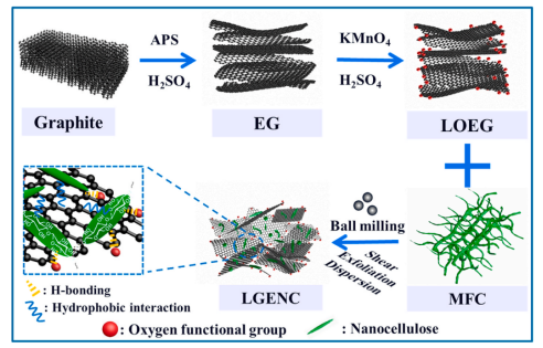 图1.球磨法一步制备纳米纤维素杂化低氧化石墨烯材料