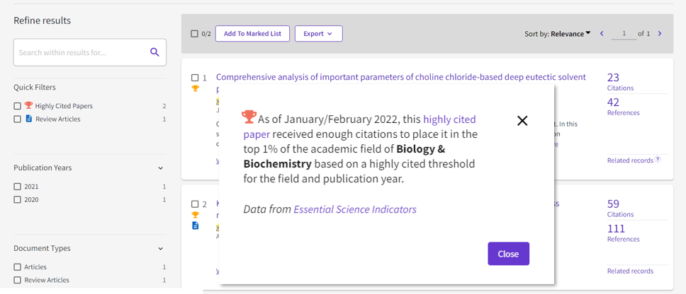 近日,据Web of Science数据库2022年最新检索报告显示,化工学院徐环斐副教授团队的两篇学术论文同时入选ESI“世界前1%高被引论文”。世界前1%高被引论文(ESI Highly Cited Papers)指近10年内发表且在同年度同学科领域中引文影响力排在前1%的论文,是衡量高校学术影响力的重要标志之一。研究内容属于生物质化工领域,围绕基于低共熔溶剂预处理的木质纤维素类生物质的高值化利用展开。两篇学术论文均是发表在该领域国际知名期刊BIORESOURCE TECHNOLOGY(中科院一区TOP期刊,影响因子为9.642)。两篇论文中,beat365官方网站均为第一单位和唯一通讯单位。