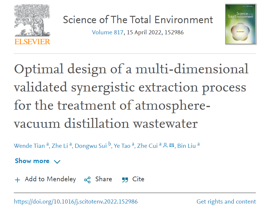 近日,beat365官方网站田文德教授团队报道了关于化工过程废水处理及碳减排的相关进展。利用多尺度模拟与实验测试相耦合的方法在化工环保方面取得突破,并在国际知名学术期刊Science of The Total Environment(中科院一区TOP,IF=10.753)、Fuel(中科院一区TOP,IF=8.035)上分别发表了题为“Optimal Design of a Multi-dimensional Validated Synergistic Extraction Process for the Treatment of Atmosphere-vacuum Distillation Wastewater”和“Comprehensive Optimization of Coal Chemical Looping Gasification Process for Low CO2Emission based on Multi-scale Simulation Coupled Experiment”的文章。