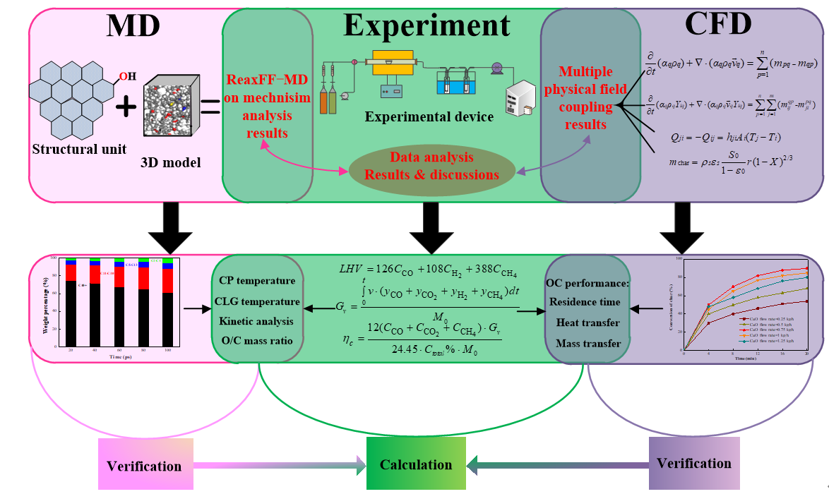 文章分别提出了基于新型协同萃取剂微观机理分析的高浓度含酚废水处理动态控制与优化策略(如图1)和基于多尺度模拟与实验测试的煤化学链气化过程全局优化策略(如图2)。从微观到宏观、从模拟到实验的多维研究体系极大程度保证了研究结果的可靠性和可行性,为实际化工装置的污染物处理与减排提供理论指导。该进展的相关文章均以beat365官方网站为第一单位,田文德教授和团队教师崔哲分别为两篇论文的第一作者,博士研究生李哲为第二作者(导师一作)。