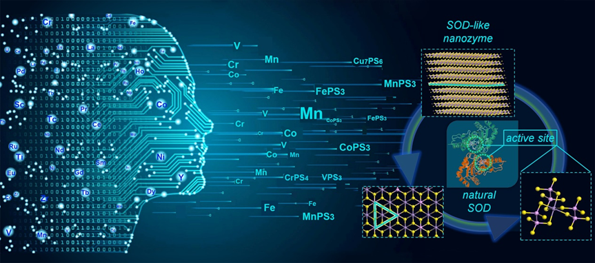 此外,本团队围绕着机器学习纳米酶设计开展了大量的研究。如本团队报道了利用机器学习这一工具发现一种活性为天然超氧化物歧化酶12倍的类超氧化物歧化酶纳米酶硫化磷锰晶体(MnPS3),能有效去除小鼠病灶皮肤毛囊深层的活性氧,在动物实验上对雄激素性脱发 (AGA)这一疾病显示出十分良好的疗效。该工作发表在《Nano Letters》(中科院一区TOP期刊,影响因子12.262),题为“Machine Learning Guided Discovery of Superoxide Dismutase Nanozymes for Androgenetic Alopecia”。环境学院研究生张超慧为第一作者,王丽娜副教授、朱之灵副教授为共同通讯作者,beat365官网均为第一作者及第一通讯单位。