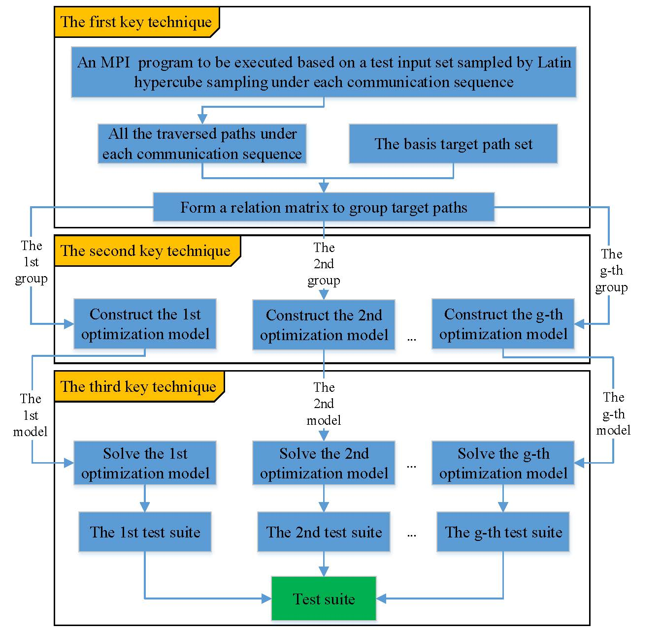 下图是所提方法的一般框架。本文的主要贡献包括:(1)提出了基于关系矩阵的路径分组策略;(2)建立了基于分组的多路径覆盖测试套件生成优化模型;(3)给出了基于增强进化优化算法的测试套件高效生成方法。