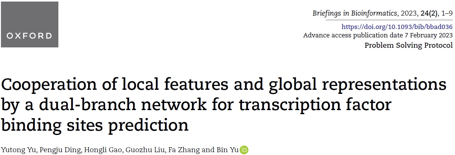 近日,beat365官方网站信息科学技术学院2019级本科生余雨桐在牛津大学出版社出版的生物信息学顶级期刊Briefings in Bioinformatics (IF=13.994) 发表了题为“Cooperation of local features and global representations by a dual-branch network for transcription factor binding sites prediction”的高水平论文,报道了构建预测转录因子结合位点的人工智能算法模型—DSAC。该模型表现出较强的特征学习能力以及优异的泛化性。