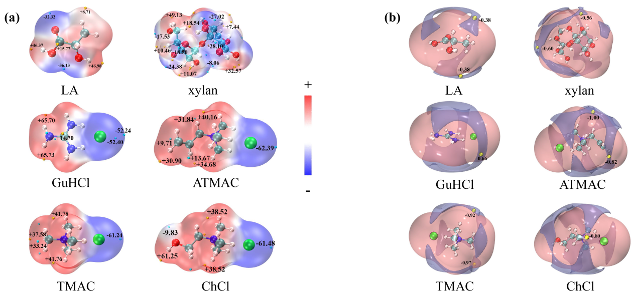 图1低共熔溶剂和半纤维素的静电势以及范德华势分析