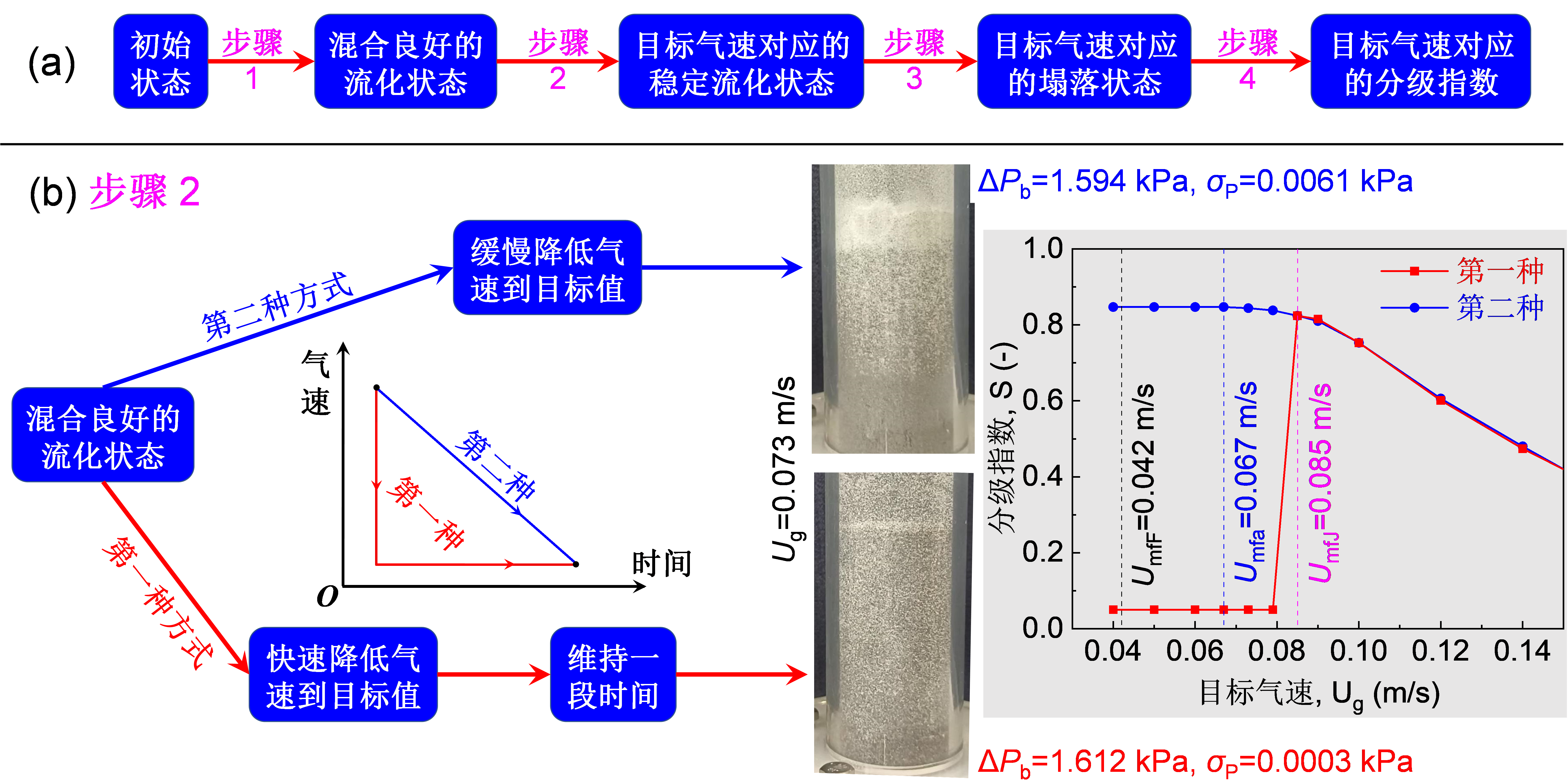 除了循环流化床,常用的流化床反应器还包括鼓泡流化床。很多时候,鼓泡流化床反应器中同时存在两种密度或粒径不同的颗粒。一个典型的例子是生物质颗粒在流化床反应器中的热解、气化过程:为了改善生物质颗粒的流化质量,同时强化床内的热量传递,通常需引入石英砂颗粒或者煤灰颗粒。当两种颗粒在流化床反应器中共同流化时,它们之间的分级(一种颗粒在床层上部富集,而另一种颗粒在床层下部富集)是一个无可回避的问题。无论是避免还是利用这种分级,都需要深入认识并掌握两种颗粒之间分级的规律。第一步即在于准确测量任意给定操作气速下两种颗粒的分级指数(分级程度的定量表征),而准确测量分级指数的关键在于首先获取可以代表该操作气速的稳定流化状态。朱全红等详细比较了获取稳定流化状态的两种常用方式,揭示了获取稳定流化状态的困难源于颗粒之间的内摩擦力。由于内摩擦力的影响,颗粒在到达稳定流化状态之前即失去运动能力,导致颗粒群停留在亚稳定平衡状态。正是由于额外亚稳定平衡态的存在,颗粒群会呈现出多态性,即具有多种平衡态。这一发现对涉及颗粒群的研究具有重要的指导意义,必须小心采取措施,使得每次实验中颗粒群都具有相同的初始状态,进而增加实验之间的可比性。这一工作的开展将会使得不同研究研究者报道的分级数据更具有可比性。该工作发表在FUEL(2023, 346: 128410),beat365官方网站为论文唯一单位。