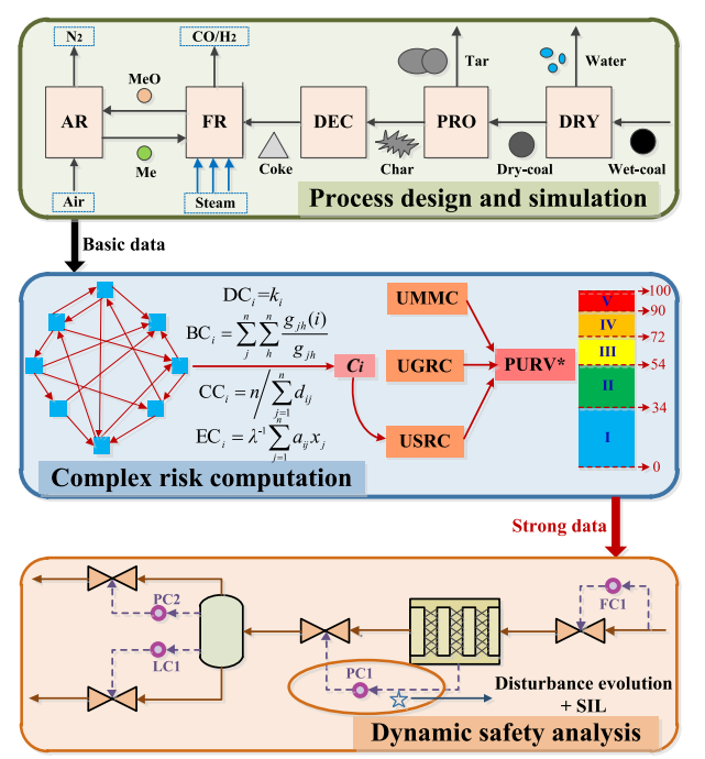 首先,田文德教授团队提出了一种基于过程建模和复杂风险计算的CCLGS动态安全控制策略。利用工艺机理仿真对CCLGS过程进行建模,仿真结果与实验结果吻合较好。通过构造邻接矩阵形成流程的复杂网络,进一步结合单位最大材料系数、单位一般风险系数和单位特殊风险系数计算出各个单元的风险值,定位了风险等级较高的操作单元。针对高风险单元设计了动态控制回路,通过安全完整性水平评估压力控制器的可靠性。该研究将为工业装置的安全控制,有助于提高化工工艺本质安全性。研究成果在国际知名学术期刊Energy(中科院一区TOP,IF=9)上发表了文章“Dynamic optimal control of coal chemical looping gasification based on process modeling and complex risk computation”(论文链接:https://doi.org/10.1016/j.energy.2023.128451)。beat365官方网站为论文的第一单位,化工学院田文德教授为论文的通讯作者,课题组崔哲老师为第一作者,硕士研究生孙阳为第二作者。