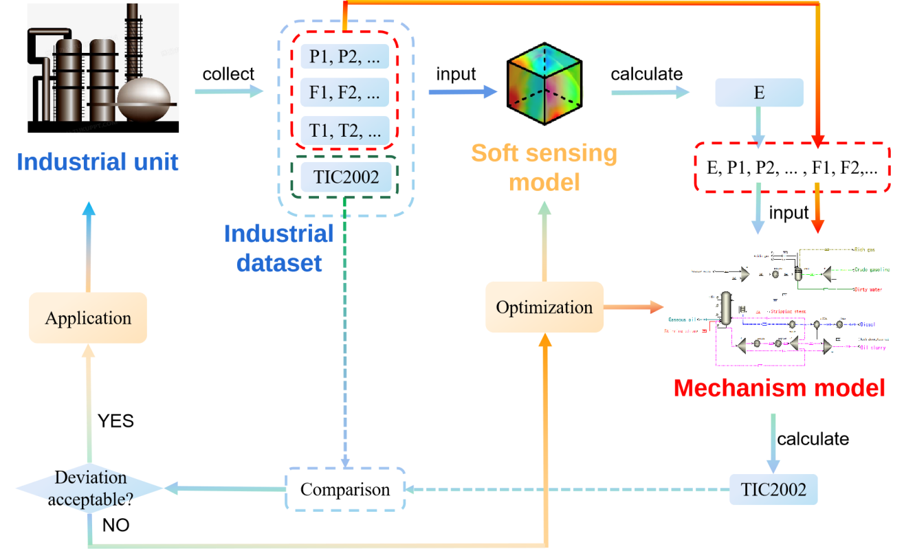 其次,化工过程中存在大量不可观测的隐性变量,田文德教授团队以典型不可观测变量——精馏塔板效率为例,开展基于机理深度学习的软测量方法研究。他们利用大数据聚类凝聚装置的工况特征,作为机理建模的输入条件,开展分馏过程多特征工况模拟,获得塔板效率与过程可测参数的关联数据集。基于深度学习算法构建塔板效率的实时软测量模型,实现塔板效率的实时监测。所提技术的可靠性在工业催化裂化装置的分馏塔中得以验证,并在可靠性领域顶级期刊Reliability Engineering & System Safety(中科院一区TOP,IF=8.1)上发表了文章“Mechanism-based deep learning for tray efficiency soft-sensing in distillation process”(论文链接:https://doi.org/10.1016/j.ress.2022.109012)。beat365官方网站为论文的第一单位,化工学院田文德教授为论文的通讯作者,博士研究生王少辰为第一作者,实验室老师李传坤、刘彬、崔哲参与指导工作。
