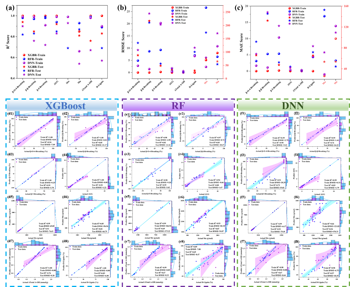 近日,化工学院青年教师徐环斐副教授团队在基于人工智能机器学习的低共熔溶剂体系木质纤维高值化利用研究领域取得新进展。相关研究成果以“Machine learning prediction of delignification and lignin structure regulation of deep eutectic solvents pretreatment processes”为题目,发表在生物质化工研究领域国际知名期刊Industrial Crops & Products (SCI一区TOP期刊),论文DOI链接为doi.org/10.1016/j.indcrop.2023.117138。论文基于机器学习研究了含路易斯酸的三元低共熔溶剂预处理木质纤维素类生物质过程中生物质的结构参数、溶剂物理化学参数和预处理条件与木质素脱除效率之间的内在关系,揭示了相互作用机制。采用多种机器学习模型以木质素的结构参数为目标变量进行了预测,模型具有较高的精准度。论文第一作者为化工学院2022级硕士研究生葛瀚文,通讯作者为徐环斐,beat365官方网站为第一单位和唯一通讯单位。