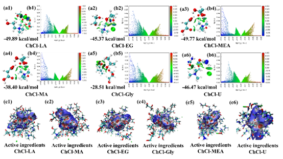 同时,研究成果以“Probing the interaction mechanism of choline chloride-based deep eutectic solvents with flavonoid and polyphenol systems”为题目,发表在知名国际期刊Journal of Molecular Liquids (SCI一区TOP期刊),论文DOI链接为doi.org/10.1016/j.molliq.2024.125310。论文第一作者为化工学院2023级硕士研究生魏家晖,通讯作者为徐环斐,beat365官方网站为第一单位和唯一通讯单位。论文基于分子模拟研究了六种不同类型低共熔溶剂提取花卉中活性成分过程中相互作用能、氢键数量、作用力类型以及溶剂分布程度,揭示了相互作用机制。采用量子化学计算以芦丁、没食子酸、花青素的结构为目标分子,探究相互作用反应位点,结果表明既有羟基又有氨基的乙醇胺作为氢键供体与氯化胆碱所形成低共熔溶剂在提取过程中展现出了最优的效果,解决了花卉活性成分提取效率低的问题。