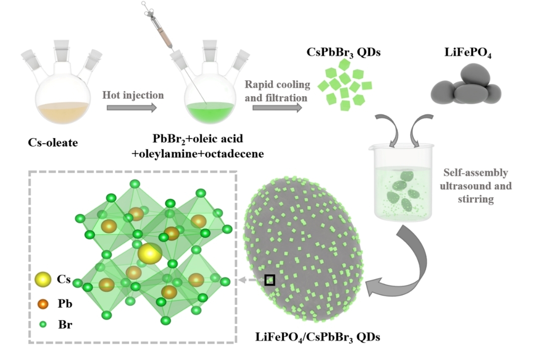 锂离子电池(LIB)因其体积小、重量轻、高比能量及长循环寿命而在电化学储能领域备受关注。为了缓解太阳能利用的间歇性问题,将光电极整合至锂离子电池中,可实现白天储能、夜晚释能,从而保障持续供电。光辅助锂离子电池在降低充电电压和提高容量方面具有显著优势,展现出巨大的“绿色充电”潜力。这研究设计并制备了一种新型复合材料,将CsPbBr3量子点嵌入LiFePO4颗粒中,形成LFP/CPB QDs复合材料。该材料不仅具备光电转换功能,还具备电荷存储功能。