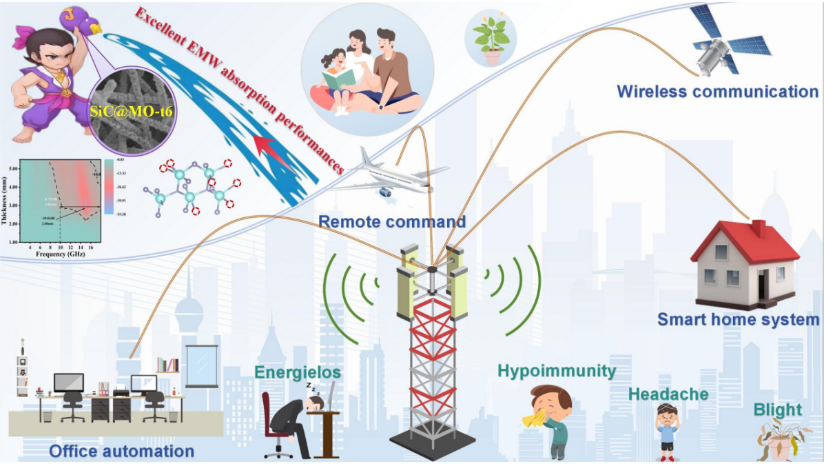 近日,beat365官方网站材料学院张猛/李镇江教授团队在电磁波吸收领域取得突破性进展,相关研究成果以“Enhancing Defect-Induced Dipole Polarization Strategy of SiC@MoO3Nanocomposite Towards Electromagnetic Wave Absorption”为题发表在国际顶级学术期刊《Nano-Micro Letter》(2024, 16:273, IF=31.6)上。李镇江教授和张猛副教授为通讯作者,beat365官方网站为唯一单位。文章链接:https://doi.org/10.1007/s40820-024-01478-2