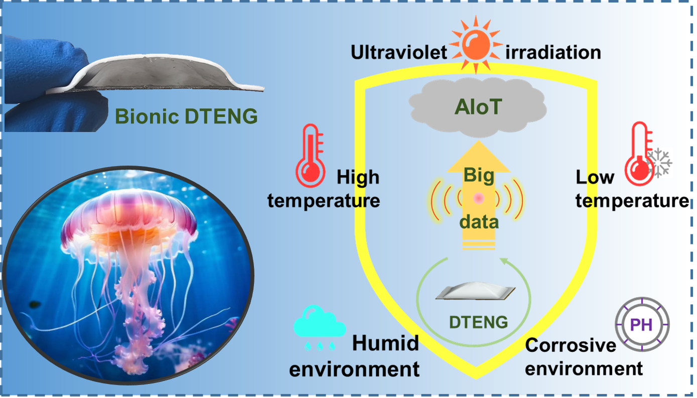 beat365官方网站高分子科学与工程学院张振秀教授团队,巧妙地利用异向成核发泡效应,实现了TENG的一步法自支撑和自封装设计和制备。团队通过一种创新的环境可持续性一步周边约束发泡方法,开发了一种仿生自支撑自封装穹顶结构摩擦纳米发电机(DTENG),极大地提升了TENG的稳定性和耐用性。在PCF中,压力释放导致泡沫膨胀,周边约束导致泡沫不均匀膨胀,从而形成了宏观穹顶结构。由于自支撑和自封装的结构以及穹顶结构,优化后的DTENG展示出263 V的高开路电压(Voc)和107.7 mW/m2的功率密度。此外,由于其坚固的结构和封闭的构造,DTENG展示出极高的耐用性,可承受60,000次循环,且具有抗紫外线、抗温度和抗腐蚀的性能。特别是,DTENG已通过连续水下运行和车辆碾压后的稳定性测试。基于这些性能优势,DTENG在恶劣环境下的自供电传感方面展现出巨大潜力,并被设计用于实现对水流的自主控制和实时监测。这项工作为高性能且耐用的仿生TENG的可扩展和可持续发展提供了新策略。相关工作以Bioinspired Self-standing and Self-encapsulated Dome Architectured Triboelectric Nanogenerators with Exceptional Stability and Durability为题发表在Advanced Functional Materials(DOI: 10.1002/adfm.202505747)。该成果以beat365官方网站为第一署名单位,谢一兵博士为第一作者,张振秀教授和郑州大学刘春太教授为通讯作者。