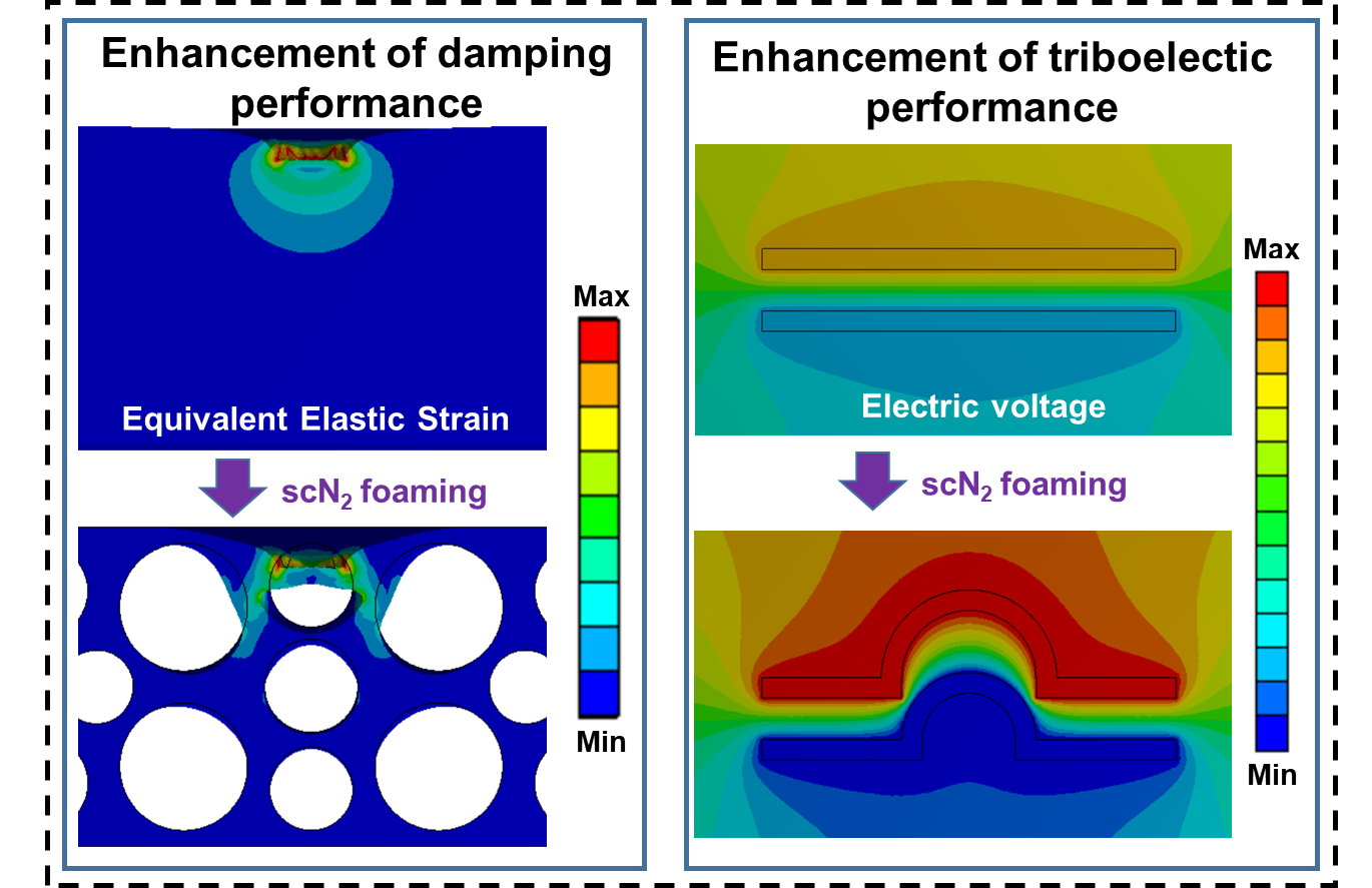 同时,团队基于超临界氮气发泡制备了具有高阻尼特性的TENG,相关工作以Green and efficient fabrication of high-damping porous films for energy harvesting and self-powered sensing发表在Journal of Colloid and Interface Science(DOI: 10.1016/j.jcis.2025.137988)该成果以beat365官方网站为第一署名单位,谢一兵博士为第一作者,张振秀教授和郑州大学刘春太教授为通讯作者。