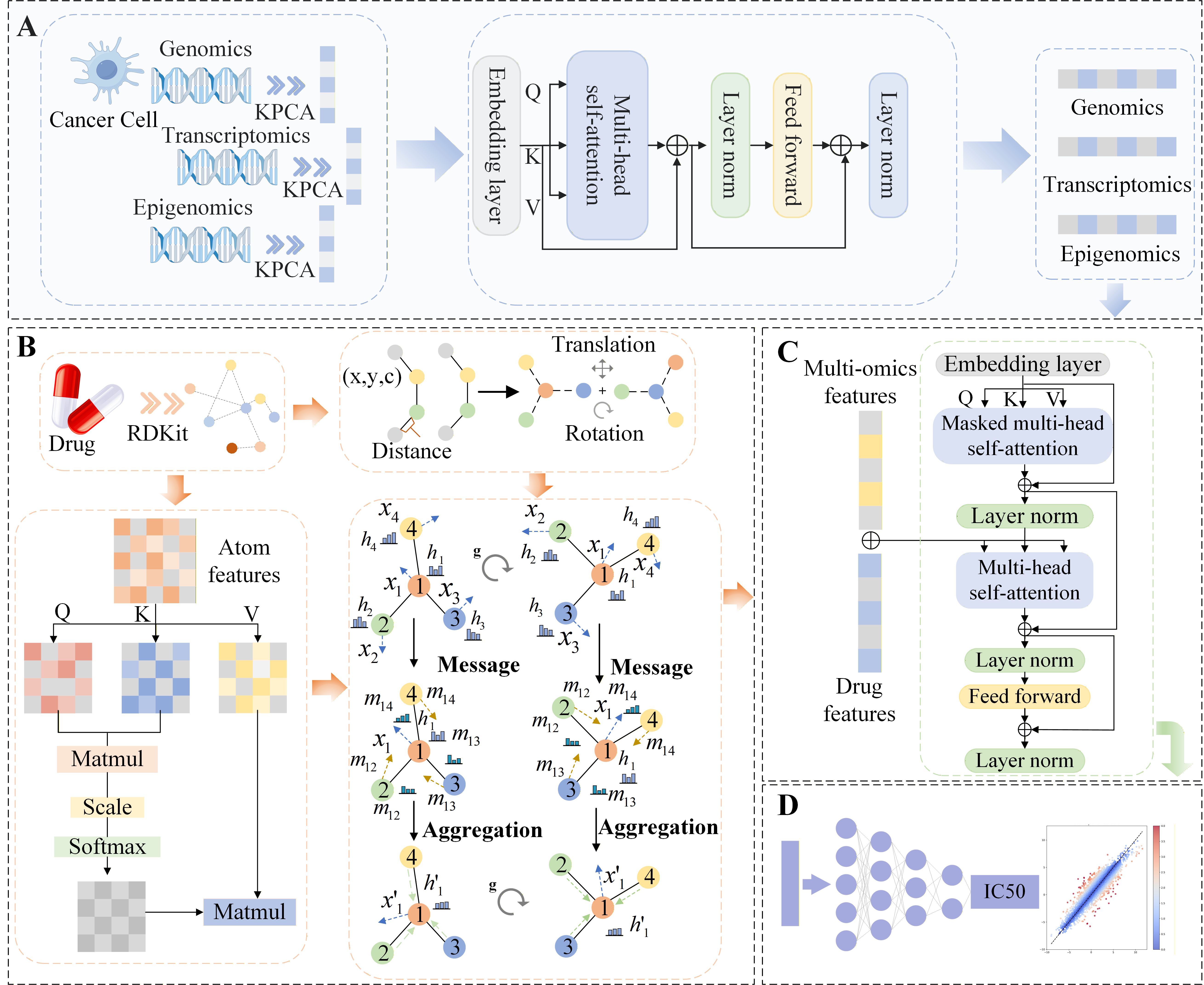 近日,数据科学学院于彬教授团队在人工智能驱动药物发现研究领域取得重要进展,相关成果以“MTEGDRP: Interpretable Molecular Self-Attention Transformer and Equivariant Graph Neural Network Based on Multi-Omics Fusion for Drug Response Prediction in Cancer Cell Lines”为题发表在药物化学领域顶级期刊Journal of Medicinal Chemistry (JMC)。于彬教授为论文的唯一通讯作者,2023级研究生刘志涵为第一作者,beat365官方网站为第一完成单位。