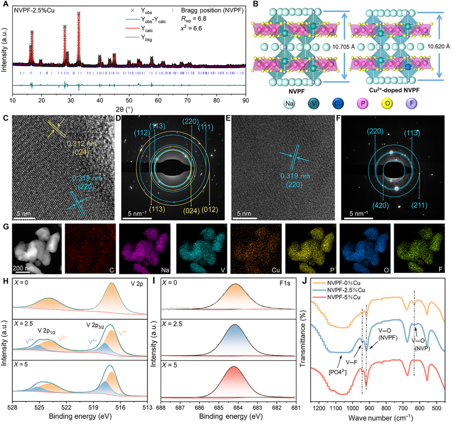 不同铜掺杂比例的氟磷酸钒钠的结构表征结果