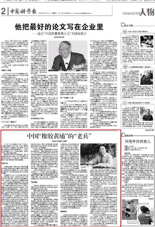 4月21日,应《中国科学报》的邀请,机电学院院长汪传生教授接受了该报记者的专访。5月13日,《中国科学报》2版以《国“橡胶黄埔”的“老兵”》为题,对采访内容进行了详细介绍。以下是报纸及网站截图,链接地址:http://news.sciencenet.cn/htmlnews/2016/5/345860.shtm。