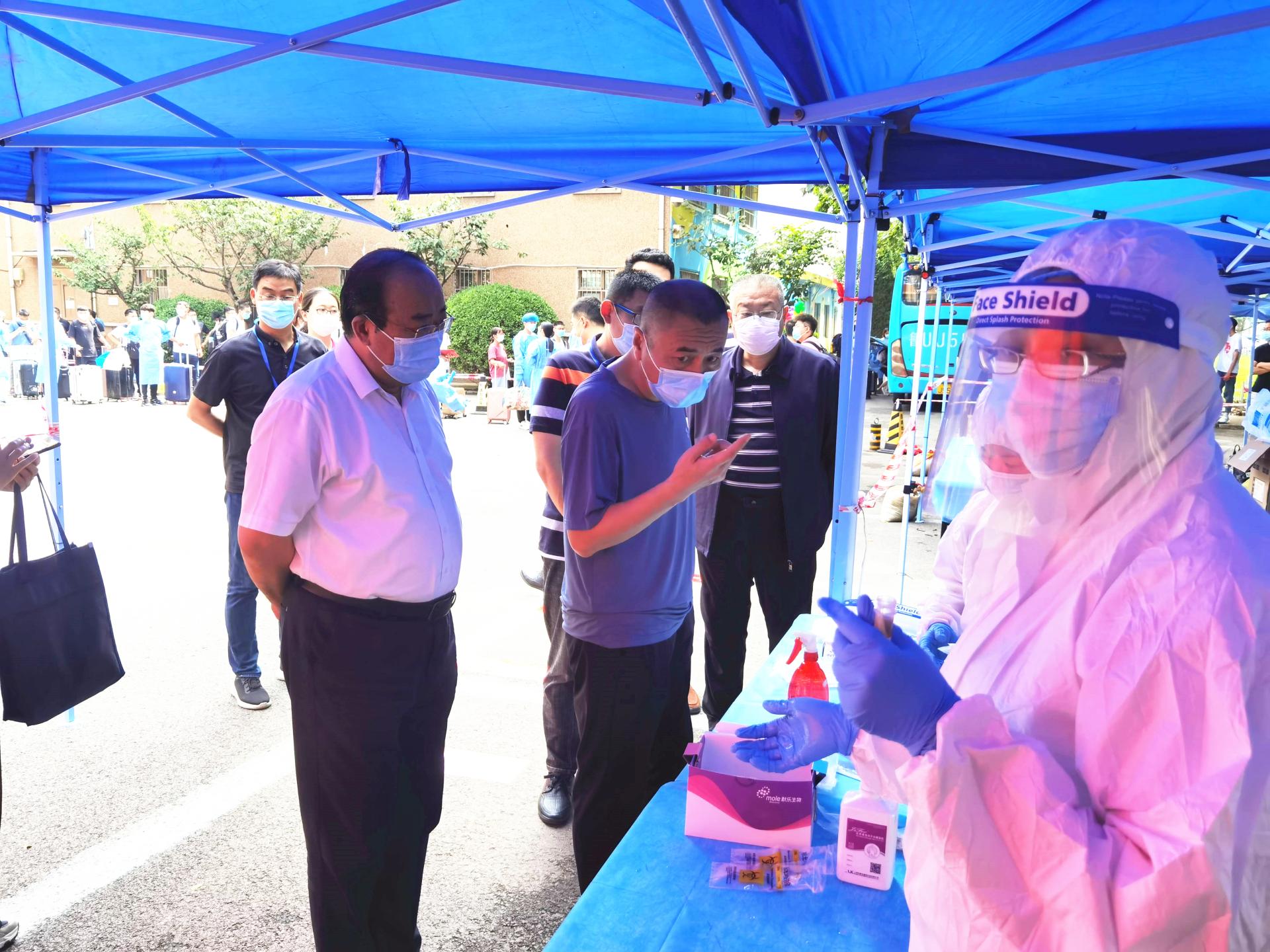 崂山区、市北区疫情防控相关负责人,学校疫情防控工作各专班负责人陪同检查。