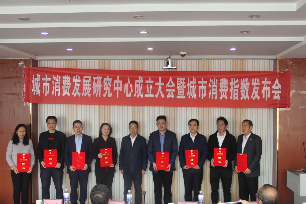 刘岐涛、吕万翔共同为城市消费发展研究中心揭牌,为研究中心特邀专家及会员单位颁发聘书。