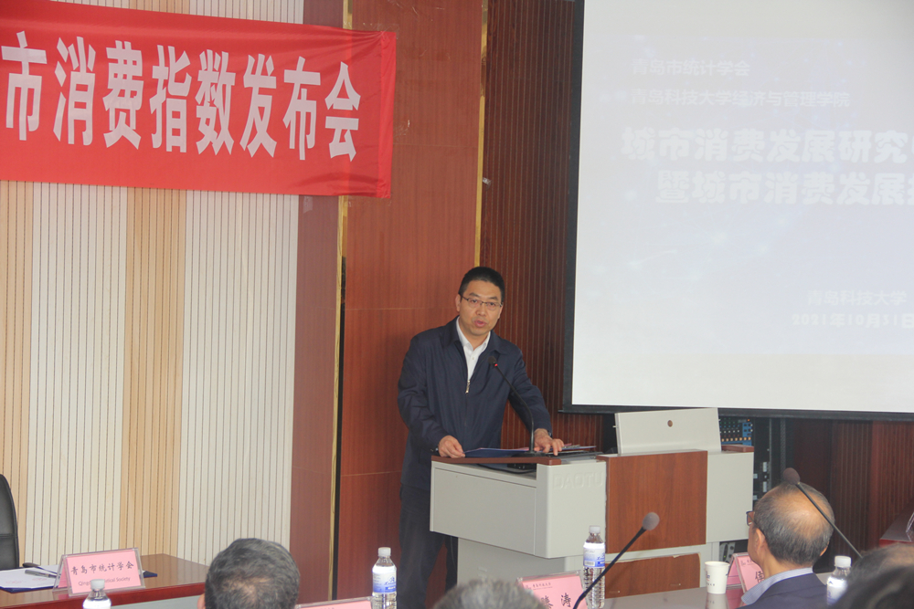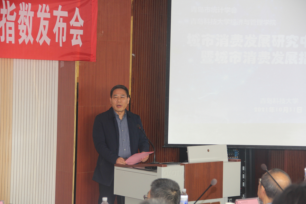 吕万翔介绍了学校办学历史、办学特色及经济与管理学院办学背景、研究特色。他指出,学校与青岛市统计学会共建城市消费发展研究中心,旨在把握新发展阶段、贯彻新发展理念、构建新发展格局,是搭建政府部门、高校、企业共同参与城市消费发展研究的重要举措。下一步,城市消费发展研究中心将结合《青岛市“十四五”商贸流通业发展规划》,定期开展消费发展指数研究工作,为党政领导和有关部门科学决策提供参考。
