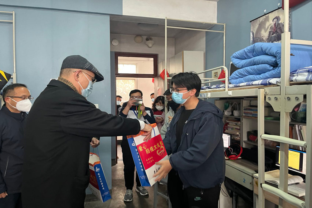 党委书记马连湘、校长陈克正等学校领导深入一线,多次走进校园各个角落督导防疫措施落实,看望慰问在校学生和工作人员,与师生同甘共苦、共渡难关。由于属地疫情防控要求暂时取消堂食,为保障学生们用餐便捷安全,学校集中为全体科大学子采购了不锈钢餐盒。3月18日上午,党委书记马连湘、校长陈克正代表学校为在校学生配发了近3.4万套防疫爱心餐盒,让同学们在惊喜之余收获了满满的感动。