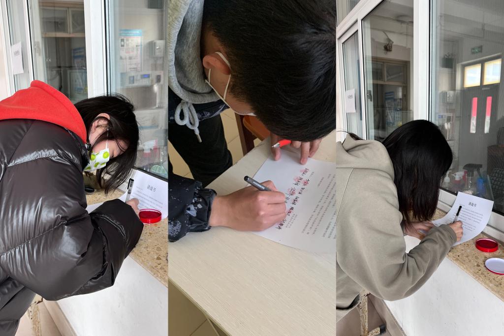 梧桐先锋,申请出战。3月14日,校园启动封闭管理后的第一天,机电系学生党支部向全体党员发出倡议。以校区“梧桐学舍”为阵地,党员迅速响应,成立“梧桐先锋志愿服务队”,为同学们排忧解难。党员们主动拟定请战书,在校学生党员无论是在备研、升本还是在做毕业设计,依旧不忘自己是一名共产党员,40名党员斩钉截铁地在请战书上签上名字,主动请战。更有6名退伍军人,时刻牢记军人的天职,退伍不褪色,若有战,召必回,主动申请冲上防疫一线,协助筑牢校园安全防线。“我是一名共产党员,我也是一名退伍军人,疫情当前,我责无旁贷!”机电系学生党员汤家虎说。
