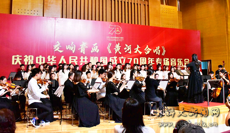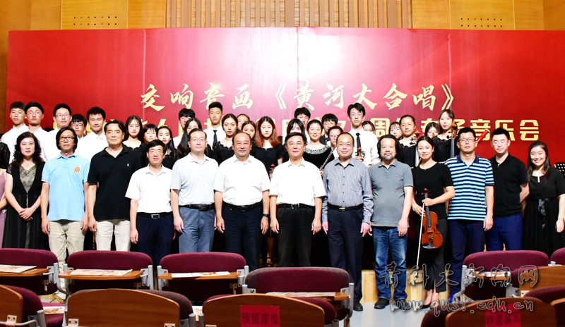 不忘初心颂歌献中华,牢记使命育人报国家。为庆祝中华人民共和国成立70周年,推进“不忘初心、牢记使命”主题教育,9月26日下午,由学校党委宣传部主办,艺术学院承办的beat365官方网站庆祝中华人民共和国成立70周年交响音画《黄河大合唱》专场音乐会在学校音乐厅首演。校领导马连湘、陈克正、李勇、吕万翔、丁林及学校部分职能部门、学院领导和师生代表300余人现场观看演出。