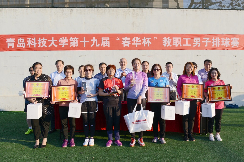 5月26日下午,学校第十九届“春华杯”教职工男子排球赛、“巾帼杯”教职工女子排球赛闭幕式在崂山校区举行。校长陈克正,党委常委、宣传部部长陈刚出席闭幕式并为获奖代表队颁奖。