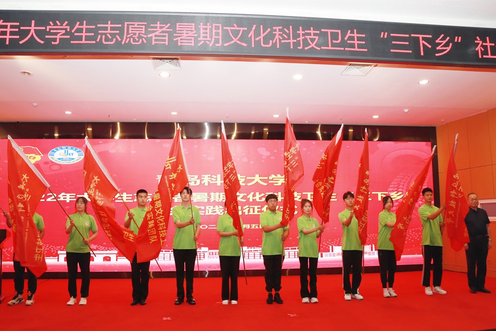 丁林为暑期社会实践队代表授旗,并就学校青年学生在实践中认真学习贯彻习近平总书记《论党的青年工作》以及在庆祝中国共产主义青年团成立100周年大会上的重要讲话精神提出四点要求:一要在实践中“读书学习”,用眼睛发现中国精神。在实践中读书学习需要不断提升“眼力”。希望同学们要在暑期社会实践中,拓宽眼界、增长见识、开阔胸襟,在深化党史、团史学习成果中提升“眼力”,在观察国情、了解社会中坚定“永远跟党走”的理想信念,发现民族精神与时代精神相统一的“中国精神”,读深读透“社会实践”这篇大文章。二要在实践中“健康成长”,用内心感应时代脉搏。在实践中健康成长需要不断提升“心力”。希望同学们以“心力”提升实现身心双向健康、双向发展,要怀着“担当、坦荡之心”,不断增强心理素质,在乡村、基层的实践中大显身手、实现价值;要怀着“奉献、服务之心”,不断提升实践本领,踏踏实实地为乡亲父老、人民群众办实事、解难题,在实践知行合一、勇毅前行,心境澄明、心力茁壮,一起向未来。三要在实践中“创新创造”,用耳朵倾听人民呼声。在实践中创新创造需要不断提升“耳力”。希望同学们要学会“倾听”,用心体悟“人民至上”,要在实践过程中倾听人民心声,将创新创造的精神融入到苦干实干、真抓实干的实际行动之中,真正与人民群众、乡亲父老“打成一片”,结合自身专业知识和技能为群众办实事、办好事。四要在实践中“艰辛奋斗”,用脚步丈量祖国大地。在实践中“艰辛奋斗”需要不断提升“脚力”。希望同学们把在《习近平与大学生朋友们》《习近平的七年知青岁月》等书籍中所学到的体会感悟,在学校体育综合改革推进中所练就的强健体魄,在学校疫情防控攻坚战中凝聚的志愿精神都融入到暑期“三下乡”的深刻实践中,让青春在奋斗中闪光。