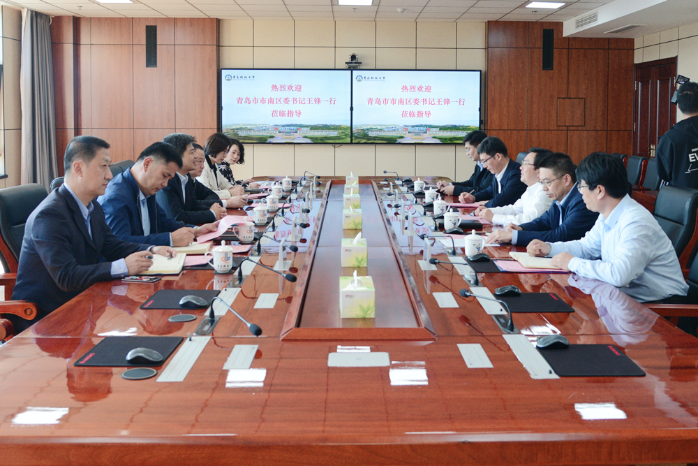 李兴伟对王锋一行到访表示热烈欢迎,从学校发展历史、学科建设、学术科研、人才培养、产学研合作和办学格局等方面介绍了学校的基本情况。李兴伟通报了学校第十一次党代会确立推动产学研深度融合,打造“青科大模式”升级版的有关措施,并希望校地双方在前期合作的基础上,进一步发挥各自优势,共同研究谋划,推进学校科技成果在市南区转化,为市南区经济社会发展贡献青科大智慧和力量。