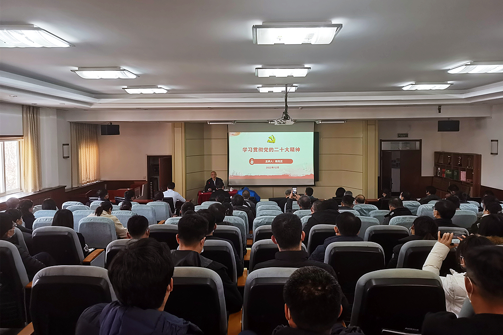 为深入学习贯彻党的二十大精神,12月6日下午,校长陈克正在高分子学院401会议室为高分子学院全体教师和学生代表及机关三各部门讲授学习贯彻党的二十大精神专题党课。党课由高分子学院党委书记孙洪广主持。