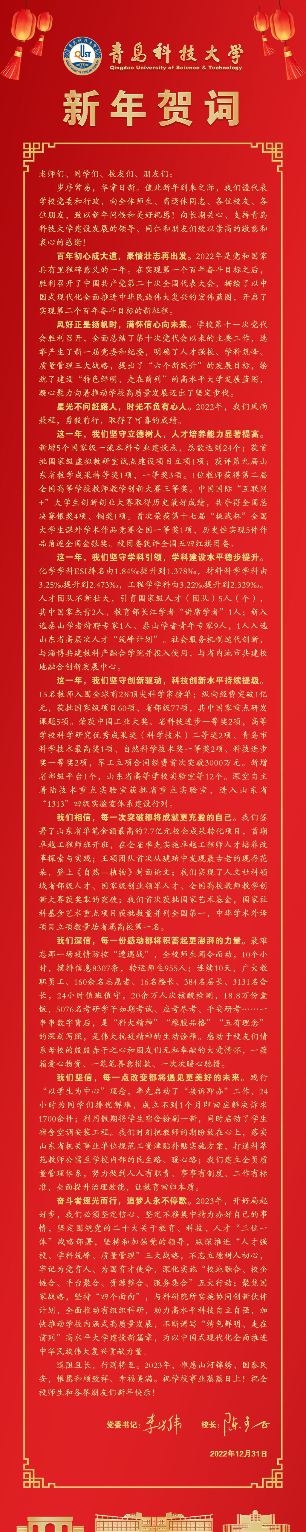 党委书记李兴伟、校长陈克正致2023年新年贺词